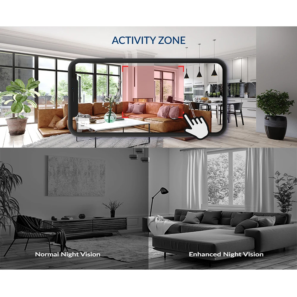 - Full Room Coverage: Remotely control the camera to pan and tilt, giving you a complete 360° view of the room.
