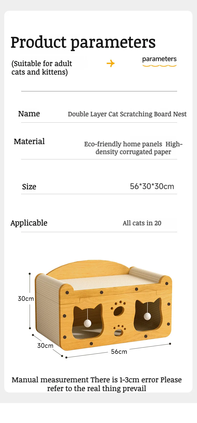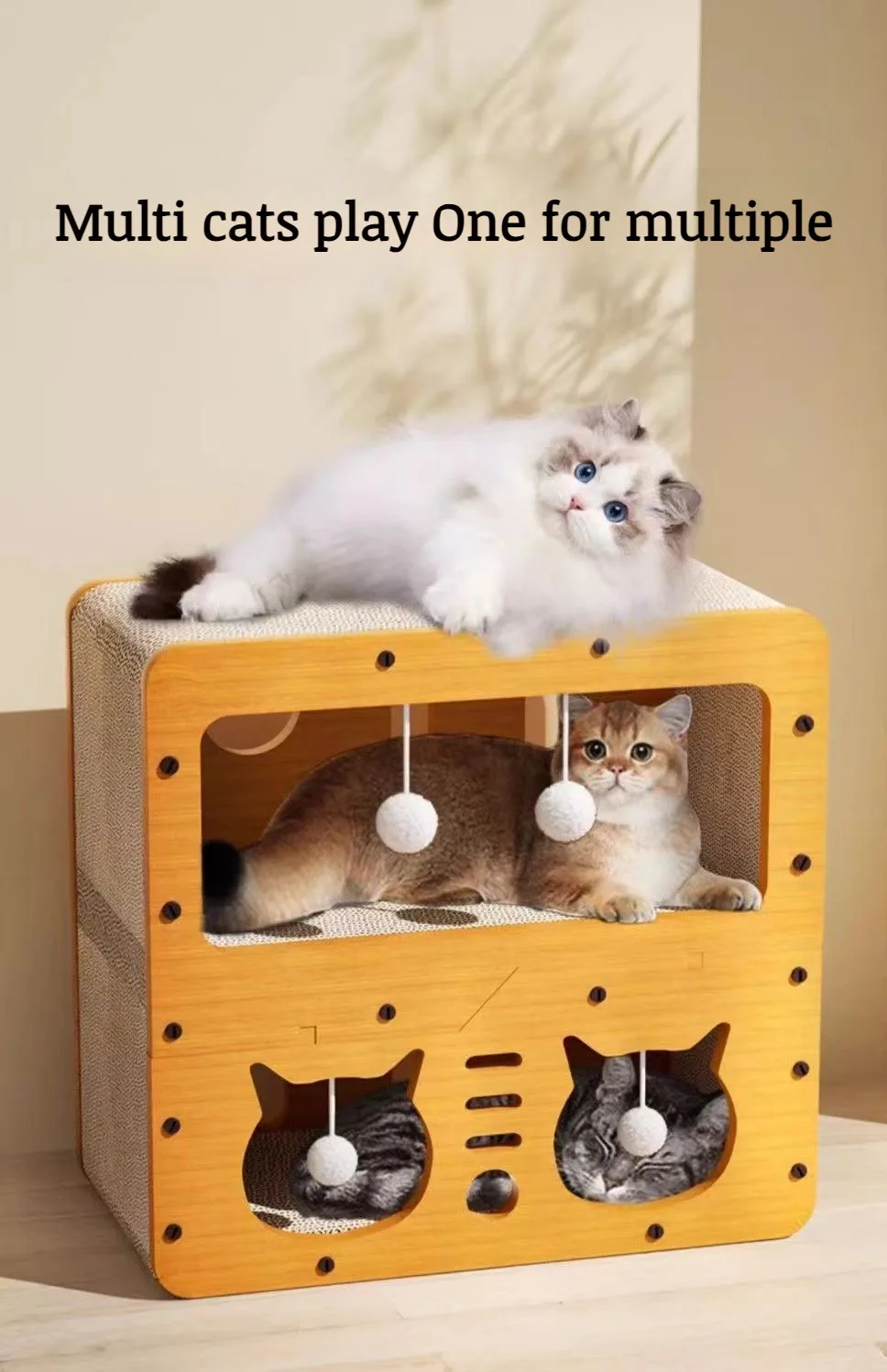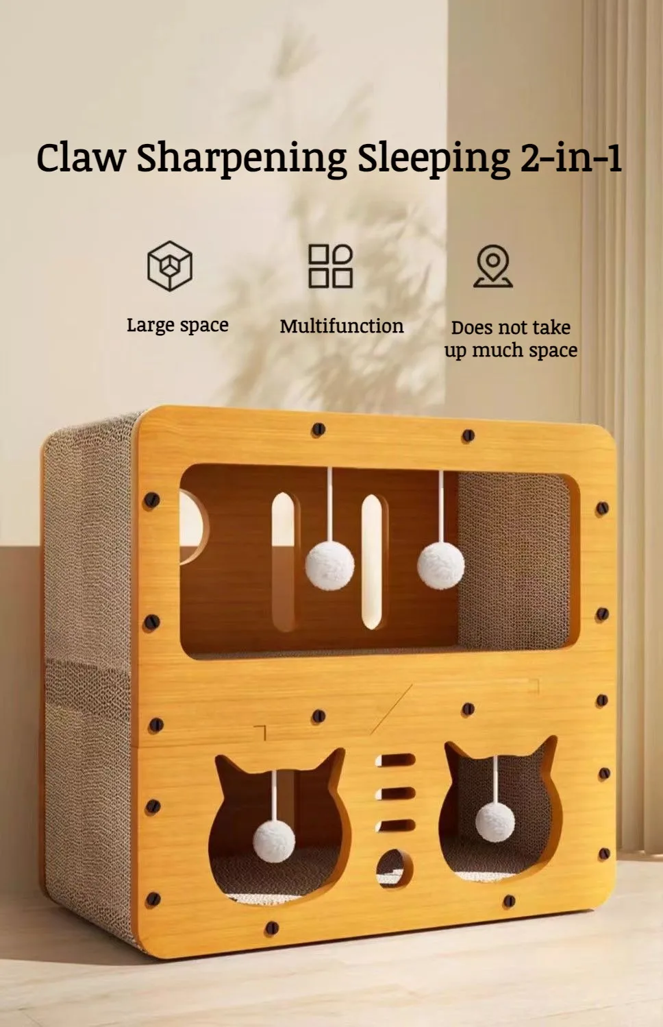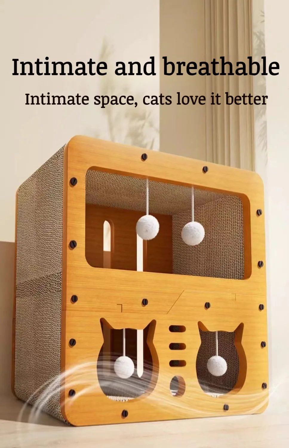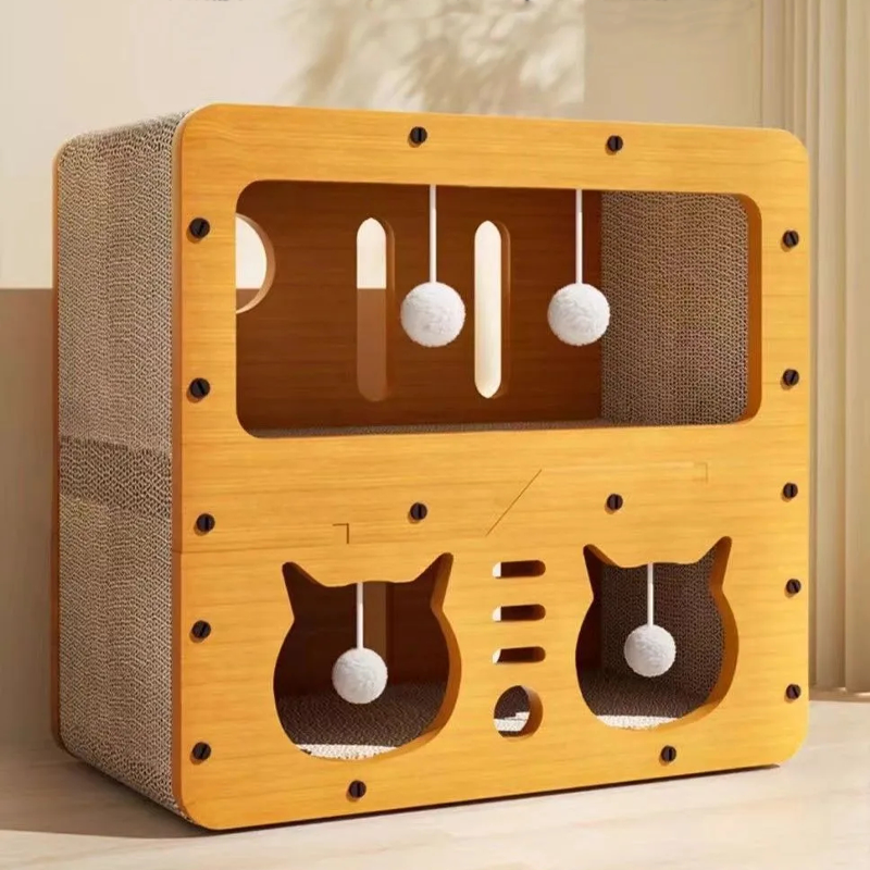 - Material: Wood composite frame, high-density corrugated cardboard scratch pads.