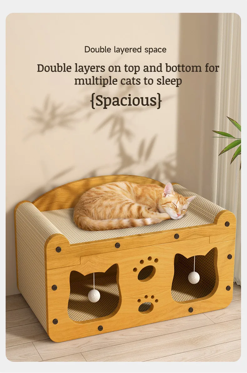 - 2-in-1 Design: Serves as both a durable scratcher with replaceable cardboard pads and a comfortable, multi-level lounge bed for relaxing.