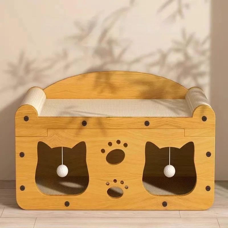 Offer your cat the ultimate combination of function and style with our Modern Wooden Cat Scratcher & Lounge Bed. Built with a sturdy, high-quality wood frame, this piece of cat furniture provides a superior scratching and lounging experience while seamlessly blending with your home decor.